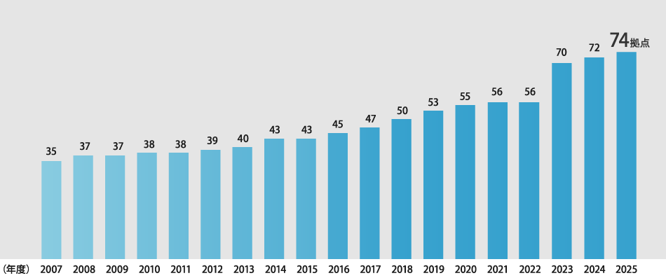 当社の営業拠点は関東以西に74拠点(2026年3月現在)。