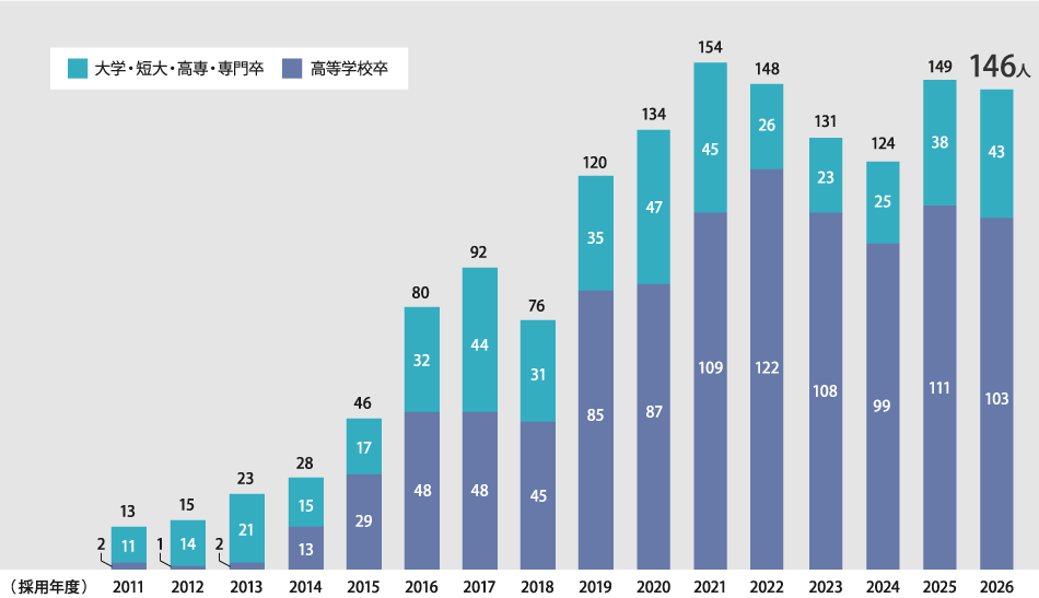 人材をもっとも重要な経営資源と考えているシモハナ物流にとって、自社雇用は当然のことです。いかに優れた物流センターを擁し、先進の設備・システムを導入していても人材がいなければお客様の信頼に応える仕事はできません。「考える物流」は人によってしか実践できない。だから当社は人材の採用と育成、さらに働きがいのある環境づくりに何よりも力を注いでいます。